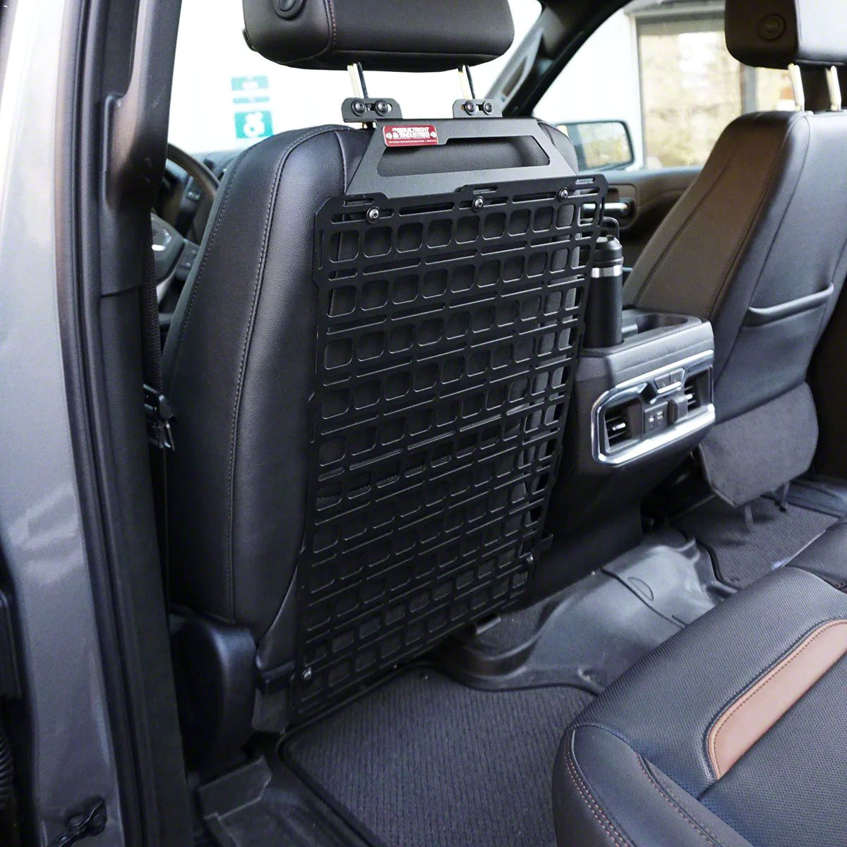 Design. This BuiltRight Industries Seat Back Tech Plate MOLLE Kit's capacity to turn the space behind the seats in your Silverado into a functional area is one of its main advantages. The MOLLE panels offer a grid-like mechanism that enables you to firmly attach various pouches, tools, and accessories. This implies your vehicle's interior won't be filled with debris or unsecured objects.