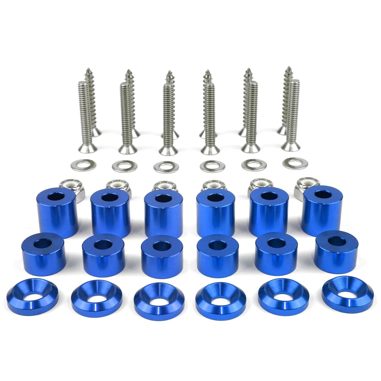 Construction and Appearance. This kit features billet aluminum spacers and stainless steel hardware, offering robust construction and resistance to corrosion. The metallic blue finish adds a touch of style to your mounting setup, ensuring it looks as good as it performs.