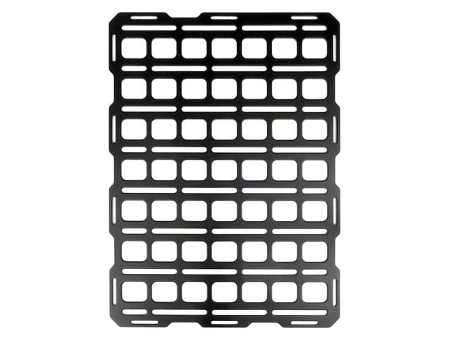 Sturdy Structure. The BuiltRight Industries Steel Tech MOLLE Panel is a versatile and rugged solution for organizing and securing gear in your vehicle or workspace. Measuring 11.50 x 15.50 inches, this panel provides ample space for attaching various accessories and tools. Constructed from robust 1/8-inch stainless steel, it ensures durability and longevity, capable of withstanding heavy loads and wear and tear. The textured black powder-coated finish not only adds a sleek and professional look but also enhances its resistance to abrasions, making it an ideal choice for those looking to optimize their storage and organization needs.