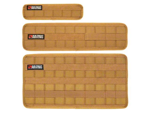 Multiple Mounting. Made for a universal fit, this BuiltRight Industries Velcro Tech MOLLE Panel comes as a 3-piece kit with 3 desert tan molle panels that allow for multiple mounting points once attached to carpeted surfaces using Velcro.
