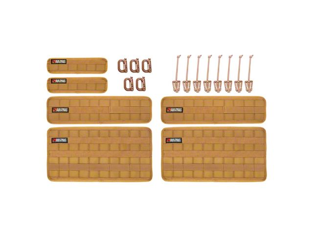 Multiple Mounting. Made for a universal fit, this BuiltRight Industries Velcro Tech MOLLE Panel comes as a 6-piece kit with 6 desert tan molle panels that allow for multiple mounting points once attached to carpeted surfaces using Velcro.