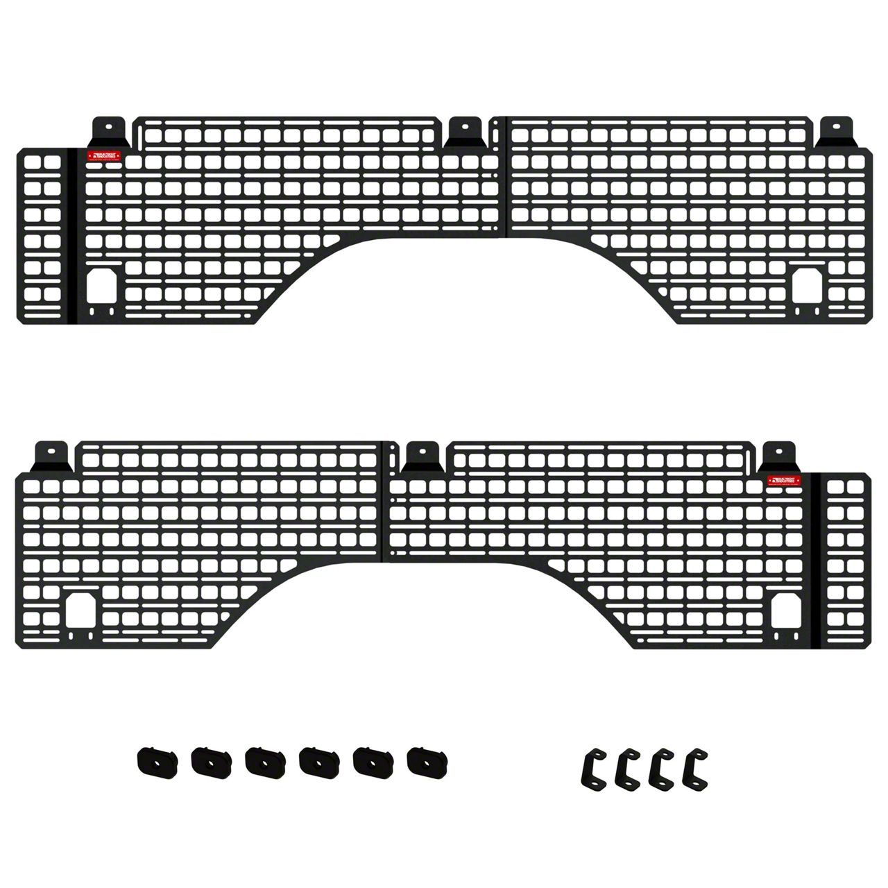 Versatile and Durable. Expertly crafted through a precision laser-cut and CNC-punched process, this rack system boasts exceptional fit and finish. Finished with a durable black texture powder-coat, this rack system not only adds a rugged and stylish look to your truck but also provides excellent resistance to rust and wear. The 11ga steel construction guarantees strength and longevity, ensuring the rack can withstand the demands of heavy use. The MOLLE/PALS compatible mounting features allow for easy configuration and customization.