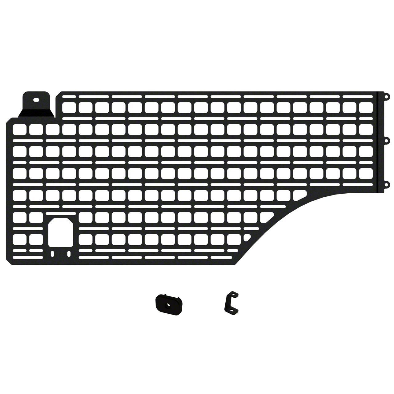 Efficient Gear Organization. The BuiltRight Industries Bedside MOLLE Rack System (Passenger Front Panel) provides an effective way to organize and secure your gear within easy reach. This MOLLE/PALS-compatible system is designed specifically for the Passenger Front Panel, ensuring quick access to essential tools and equipment during your travels.