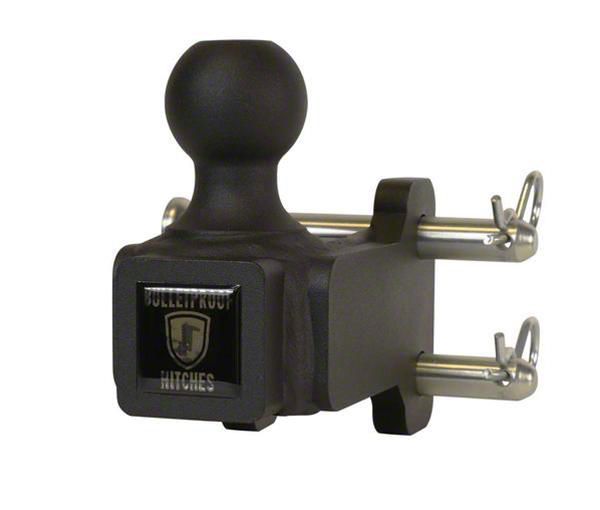 Construction and Appearance. This BulletProof Hitches 1-7/8-Inch Single Hitch Ball is manufactured from strong steel with a textured black powder-coat finish. The weight rating is 6,000 pounds and there are included 5/8-inch pins.