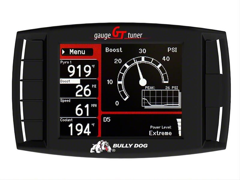 Power in Your Palm. Accessing all that valuable data, performance gains and hidden power in your 6.6L Sierra 2500 doesn't take a team of mechanics - at least not with the Bully Dog GT Tuner. This tuner includes multiple functions that puts the speed shop in your palm: Monitors, gauges, diagnostic tools and tuning. From adjusting the speedometer to match large aftermarket tires, to changing transmission shift points and/or shift firmness, to monitoring 4 gauge functions simultaneously, the GT lets you manage it all. Its tuning capabilities affords you the opportunity to really unleash the power of your 6.6L.