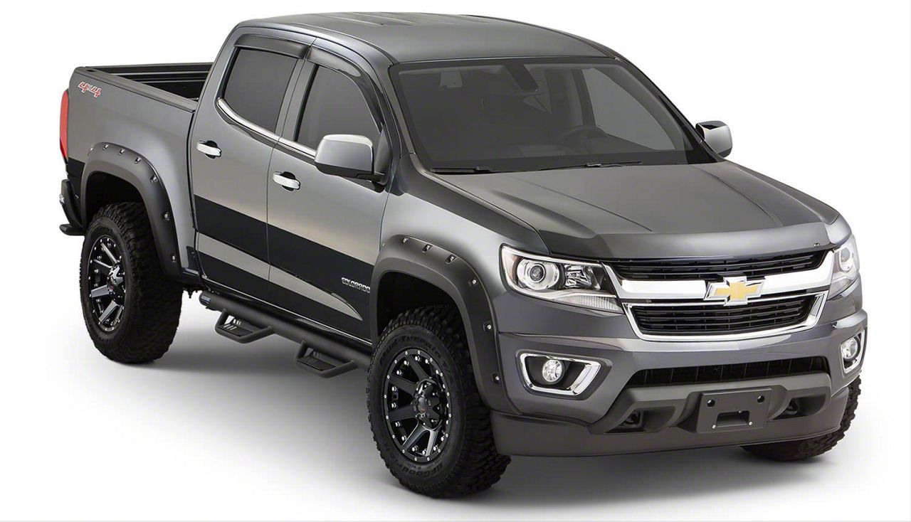 Application. The Bushwacker Pocket Style Fender Flares; Front and Rear; Matte Black fits all 2015-2020 Chevrolet Colorado models with 6-Foot Long Box, Excluding ZR2 models.