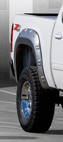 Application. The Bushwacker Cut-Out Rear Fender Flares - Matte Black fits all 2007-2013 GMC Sierra 1500 regular cab and extended cab Models, with standard or long boxes.