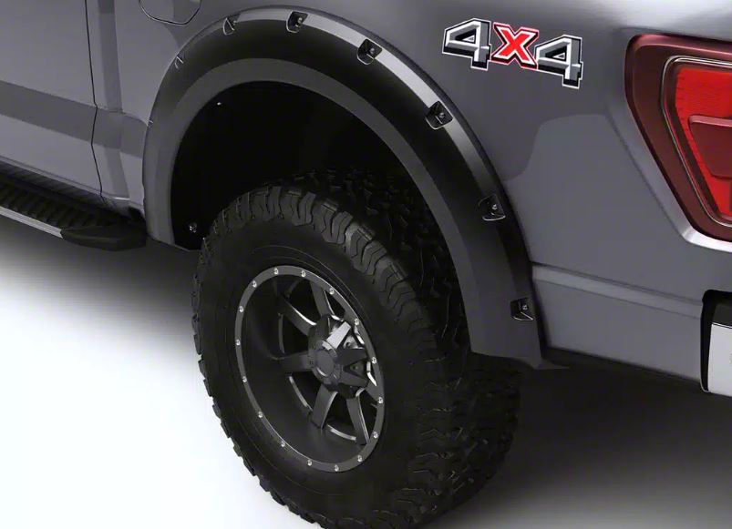 Durable Off-Road Styling. These Bushwacker Fender Flares add a rugged, riveted look to 1999-2007 Ford F-250 Super Duty models while delivering enhanced protection and tire coverage. Designed in a forge style and finished in textured black, they blend functionality with aggressive appearance, making them ideal for off-road builds or wide tire setups.