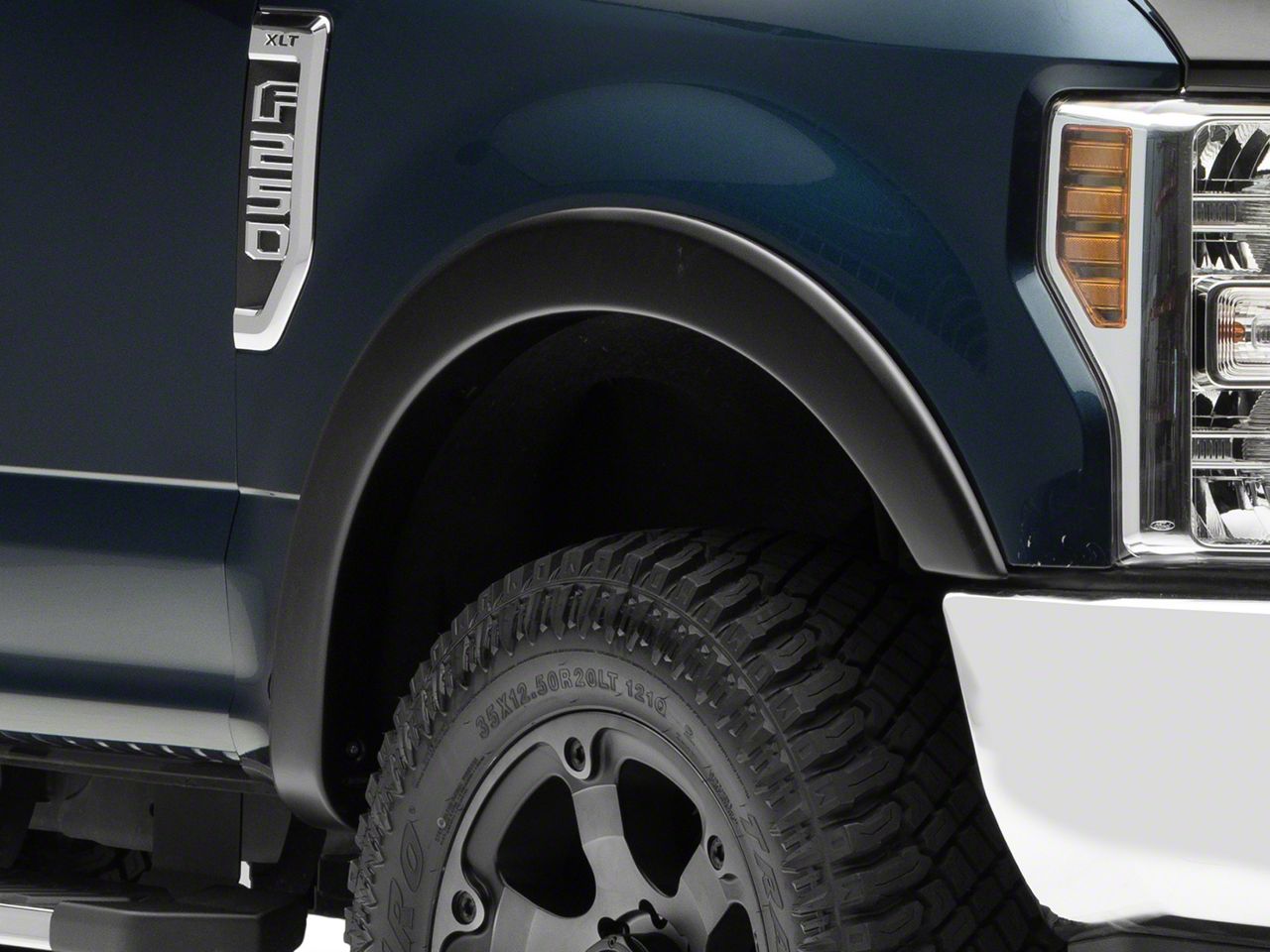 Functionality and Style. Transform your Ford Super Duty with a bolder look, commanding stance, and extra protection by replacing your faulty fender flares with these Bushwacker Matte Black OE-Style Fender Flares. These 4-piece set fender flares provide reliable protection by durably deflecting stones and debris potentially hitting your truck. Each piece also adds a wider tire coverage of 0.75-inch to accommodate aggressive wheel and tire combinations. Moreover, the low-profile fender flares exude a tough and appealing ruggedness as it stylishly fits the contours of your Super Duty’s wheel wells.