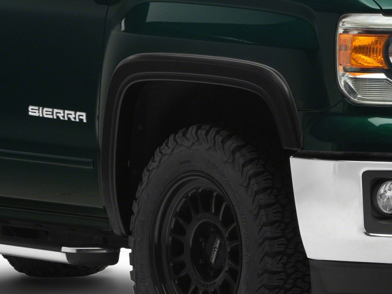 Improved Style. Give your 2014-2018 GMC Sierra 1500 a uniquely hardcore accent by installing Bushwacker's Matte Black OE Style Rear Fender Flares. The perfect addition to your high-performance truck, these fender flares are created to dramatically boost your truck's overall style with a sleek pattern that compliments lowered and sport truck styles.