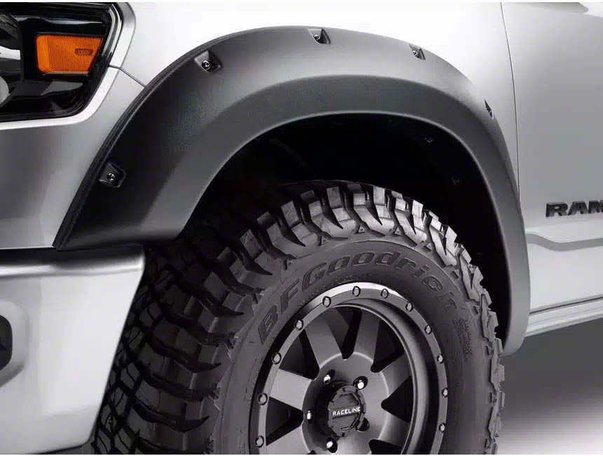 Aggressive and Rugged Protection. The Bushwacker Forge Style Fender Flares offer a bold, aggressive look with their rugged design, enhancing both the appearance and functionality of your RAM 1500. These fender flares provide extra tire coverage, making them ideal for off-road use by protecting your vehicle from mud, debris, and road hazards.