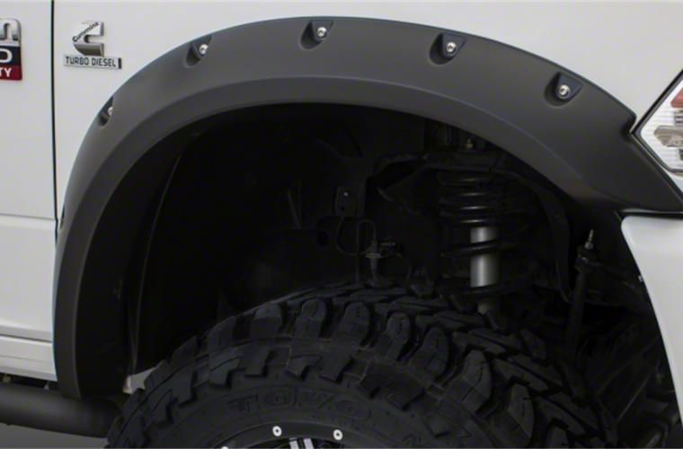Application. The Bushwacker Max Coverage Pocket Style Fender Flares; Front and Rear; Matte Black fits all 2010-2018 Dodge RAM 3500 models.