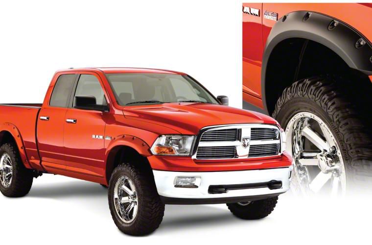 Description. With their recessed stainless steel bolts and massive presence, Pocket Style Fender Flares are a Bushwacker original and an off-road icon. They give you the hard-core look of bolt-on flares, with no body-side sheet metal drilling required. Pocket Style Fender Flares are custom-designed for your vehicle to complement oversized tires and high-clearance lift kits. You can mount them right out of the box with their tough, OEM-style matte black finish they're UV protected so they won't chalk. You can also paint them to match or accent the body color for a factory-custom look. Pocket Style Fender Flares are made in the USA from Bushwacker thick, warp-resistant Dura-Flex 2000 material and tailor-made for added durability and flexibility on the trail. When you need maximum tire coverage with minimum time and effort, it's in the pocket. Pocket Style Fender Flares from Bushwacker.