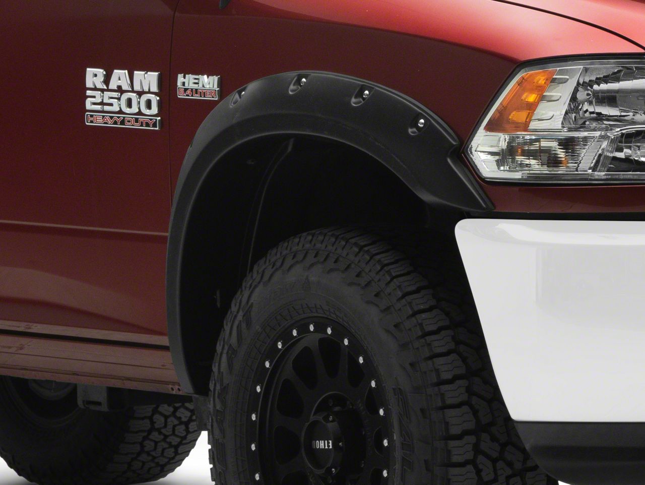 Simple Accentuation. Want a simple way to level up the appearance of your RAM? Then take on these Bushwacker Pocket Style Fender Flares. An accessory that will accentuate your car without compromising your savings. These fender flares will not only add a stunning design but will also bring fort incredible protection to your car and tires. They feature extra tire coverage that will keep out pebbles, rocks, and other damaging road elements from your car.