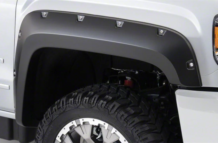 Bold Styling, Extra Protection. Bushwacker Pocket Style Fender Flares for the Sierra 2500 HD are designed to enhance your truck's appearance and protect its body from road debris and harsh conditions. Their matte black finish adds a rugged, custom look.