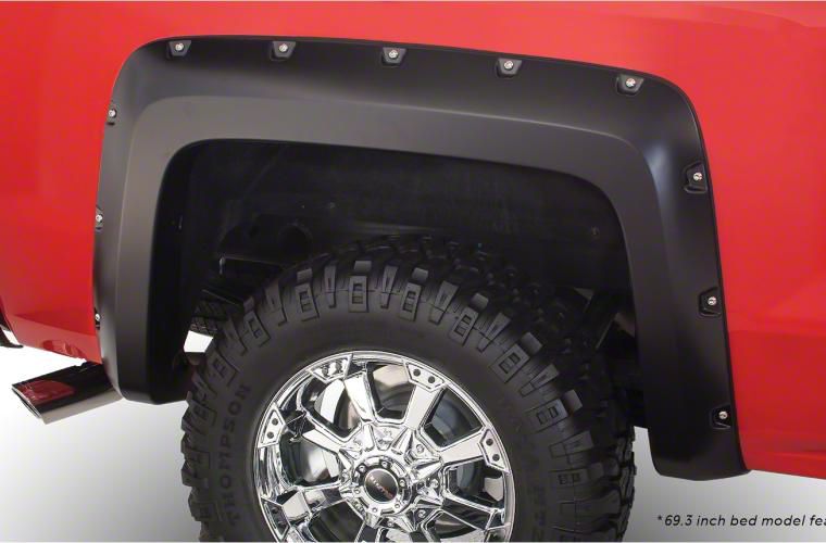 Aggressive, Protective Styling. Are you looking for better protection against dirt, road debris, and harsh weather? Keep your truck safe and clean with the Bushwacker Pocket Style Fender Flares. Made for Rear applications, these fender flares come with an aggressive design and a gorgeous matte black color that can make any Silverado more resilient on off-road terrain.