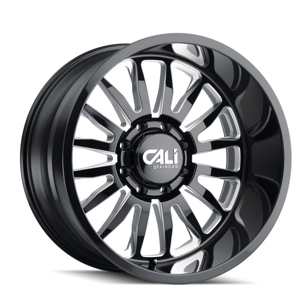 The 22x12 Cali Off-Road Summit Gloss Black Milled 8-Lug Wheel is completed in a high-quality gloss black finish with steel milled accents that will be the envy of everyone. For added protection and good looks, there is a durable clear coat that withstands the rigors of everyday driving,
