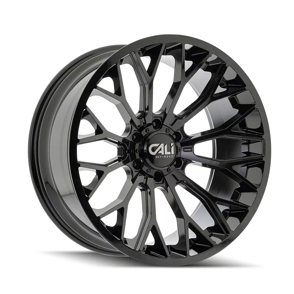 Cali Off-Road Evoke Gloss Black 6-Lug Wheel; 22x10; -19mm Offset Wrapped in a lustrous gloss black finish, this wheel brings a confident, streamlined presence to any vehicle. As part of the Cali Off-Road lineup, the Evoke showcases the brand's dedication to both form and function. This wheel is an excellent choice for drivers looking to elevate their vehicle's appearance with a quality upgrade.