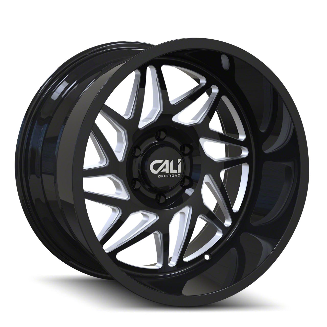The 24x14 Cali Off-Road Gemini Gloss Black Milled 6-Lug Wheel is completed in a high-quality gloss black finish with steel milled accents that will be the envy of everyone. For added protection and good looks, there is a durable clear coat that withstands the rigors of everyday driving,