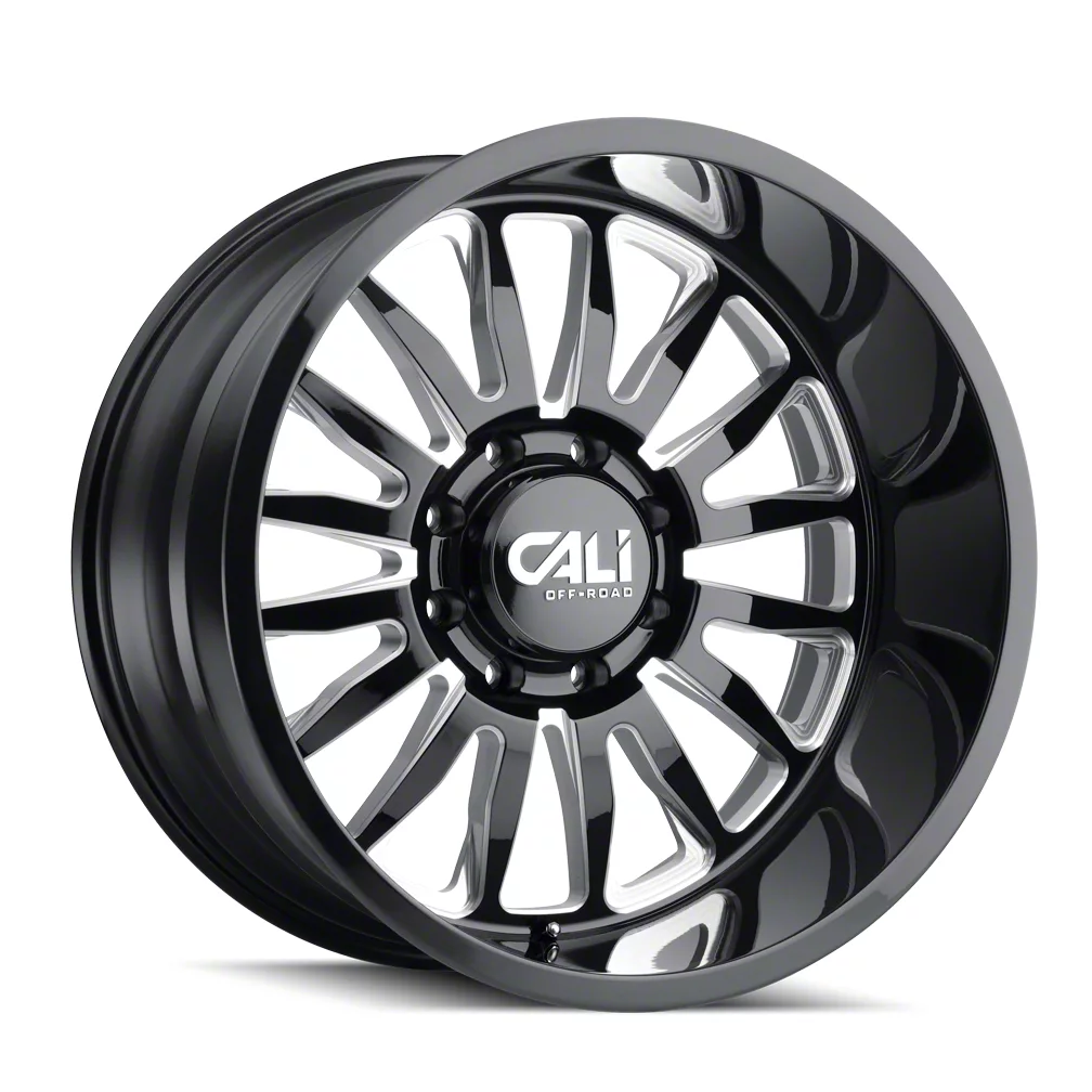 Application. This Cali Off-Road Summit Gloss Black Milled 8-Lug Wheel; 20x9; 0mm Offset, with a backspacing of 5 Inch, 127mm and a bolt pattern of 8 x 165.1mm (8 x 6.5-Inch), is designed to fit 2010-2018 models. Sold individually.