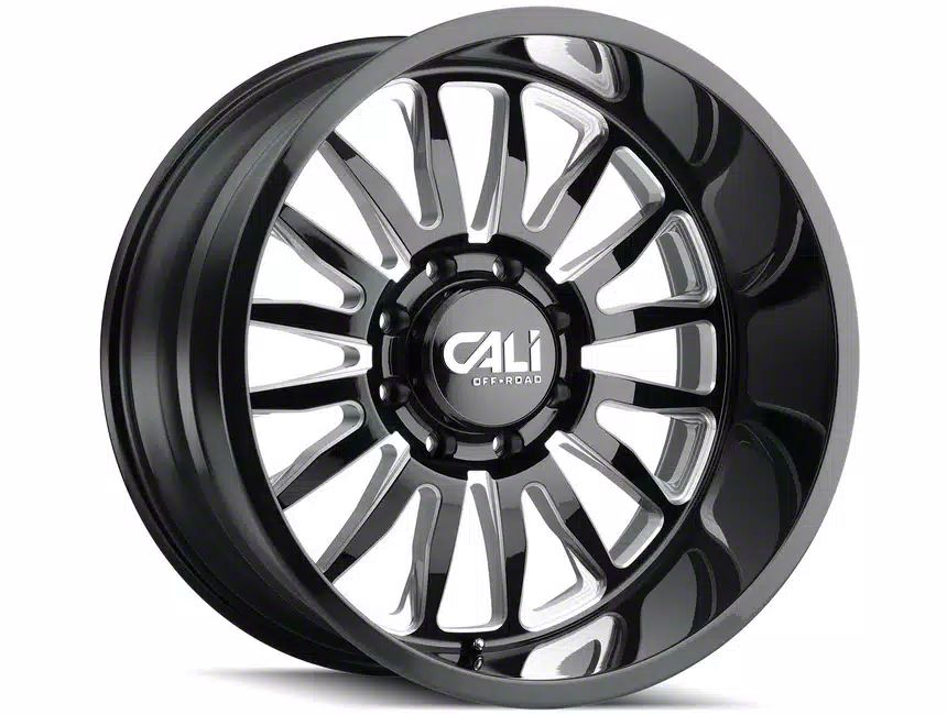 The 22x12 Cali Off-Road Summit Gloss Black Milled 6-Lug Wheel is completed in a high-quality gloss black finish with mirror cut accents for a striking contrast in appearance that everyone will envy.