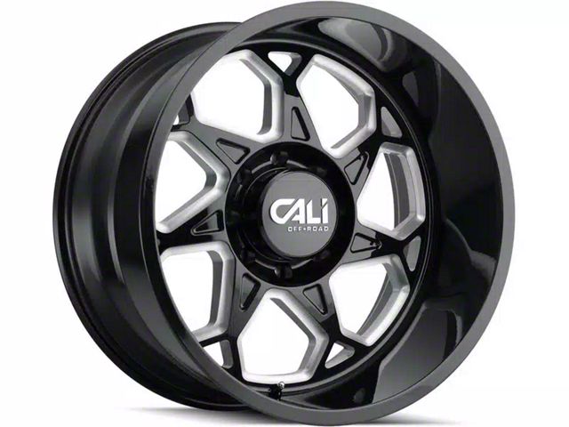 This 20x9 Cali Off-Road Sevenfold Gloss Black Milled 6-Lug Wheel is completed in a high-quality gloss black finish with steel milled accents that will create a striking appearance. There's a durable clear coat that protects against driving hazards.
