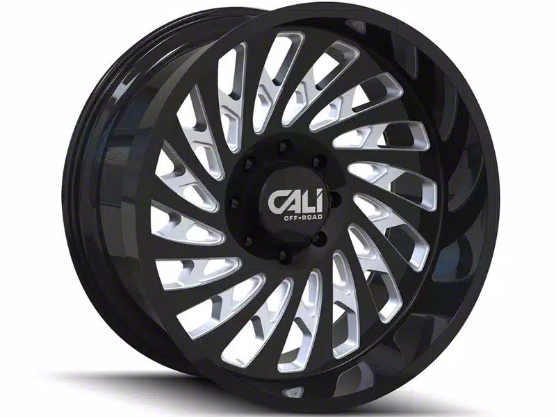 This 20x10 Cali Off-Road Switchback Gloss Black Milled 6-Lug Wheel is completed in a high-quality gloss black finish with steel milled accents that will make the wheel the envy of everyone. There is a durable clear coat that protects against driving hazards.One-Piece Cast Aluminum Construction. This wheel is manufactured using gravity casting. Gravity casting is the process of pouring a molten aluminum alloy into a wheel mold or form utilizing the earth's own gravity to help fill the mold. The result is a strong, durable wheel that has the same good looks as a more expensive wheel, at a fraction of the price.