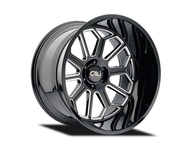 This 20x9 Cali Off-Road Auburn Gloss Black Milled 8-Lug Wheel is completed in a high-quality gloss black finish with steel milled accents that will be the envy of everyone. There's a durable clear coat that protects against driving hazards.