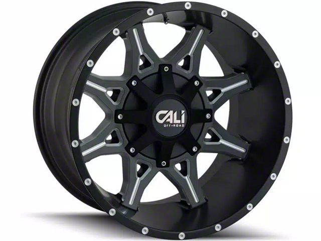 This 20x9 Cali Off-Road Obnoxious Satin Black Milled 6-Lug Wheel is completed in a high-quality satin black finish with steel milled accents that will make the wheel the envy of everyone. There is a durable clear coat that protects against driving hazards.One-Piece Cast Aluminum Construction. This wheel is manufactured using gravity casting. Gravity casting is the process of pouring a molten aluminum alloy into a wheel mold or form utilizing the earth's own gravity to help fill the mold. The result is a strong, durable wheel that has the same good looks as a more expensive wheel, at a fraction of the price.