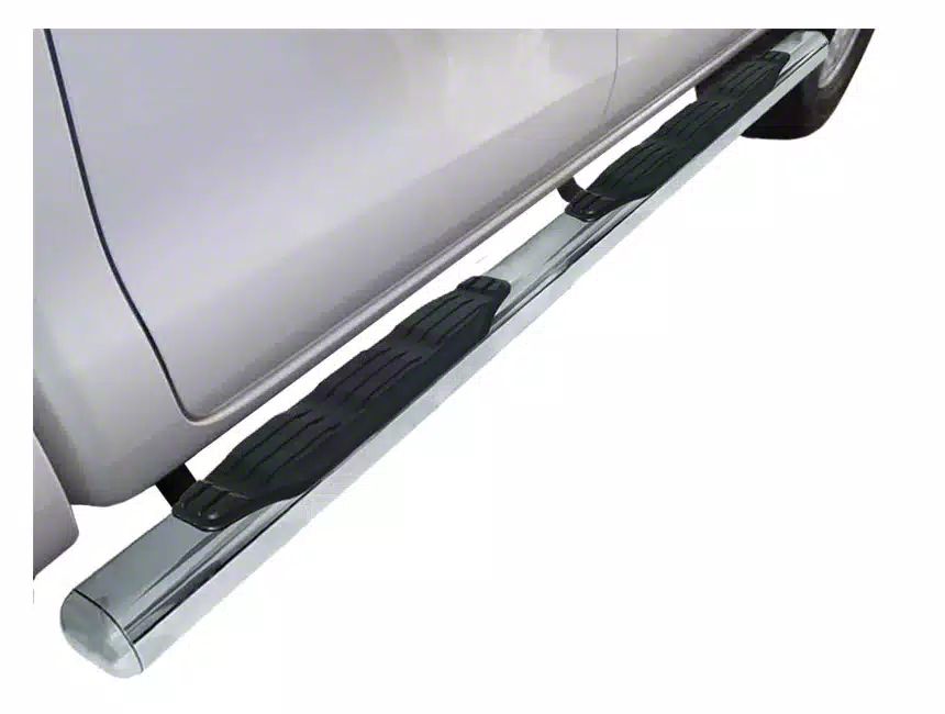 Check out the 5" 1000 Series Polished Nerf Bars by Go Rhino. These bars are great because they offer a budget-friendly way to get sturdy 5" wide steps for your truck or SUV. Features include an OE-Style, 5" wide appearance, welded end caps, and a near-chrome polished finish. This product comes with everything you need to get these installed in a couple hours, and has a limited lifetime warranty. Purchase a set of Go Rhino 5" 1000 Series Polished Nerf Bars today!