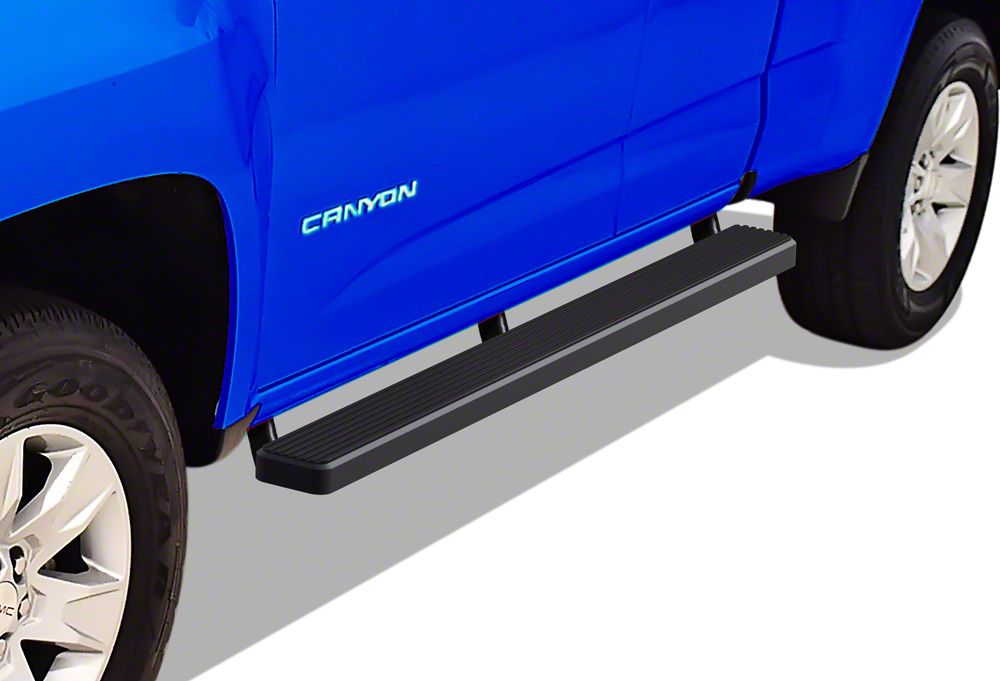 Secure and Safe. The broad step area and non-slip surface of the 5-Inch iStep Running Boards in Hairline Silver make them a safe and secure stepping platform for entry and exit to your GMC Canyon Extended Cab. Rain, snow, and extremely cold temperatures are all things that the iStep Running Boards are made to handle.