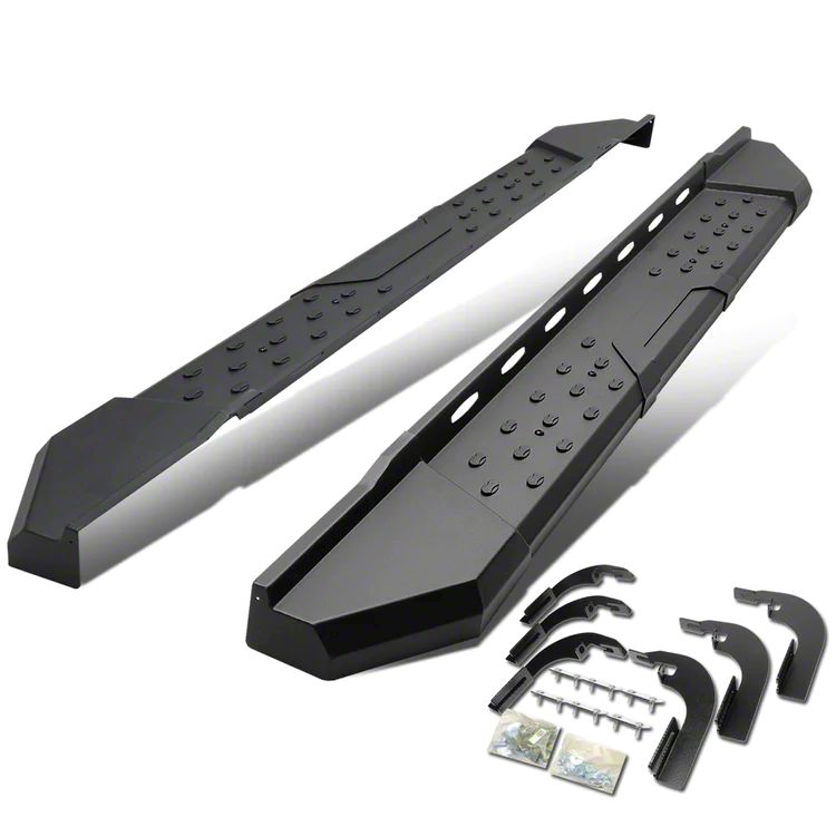 Running boards are a"two for one" accessory: they provide a large dose of style, combined with the functionality of a step up and into your SUV or pickup truck. The running boards we carry at combine good looks, high-quality, and great value. Once you plug in your specific year, make, and model, you can choose running boards from a wide range of materials, finishes, and features. Most models include all attachment hardware and can be installed without drilling. Once they're in place, you'll enjoy the new look as well as the greater ease of getting into and out of your rig!