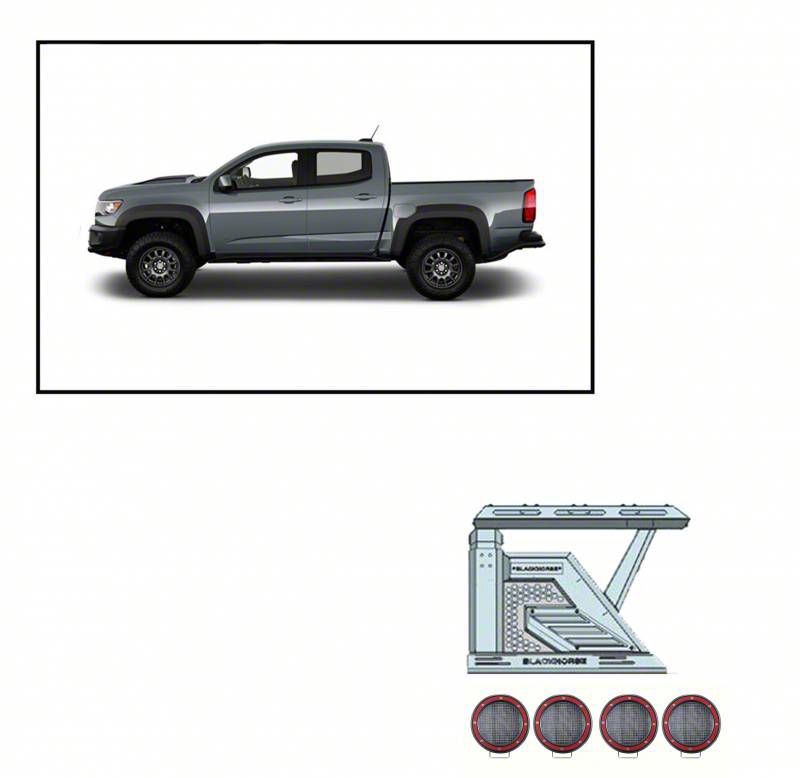 Application. The Armour II Roll Bar with 5.30-Inch Red Round Flood LED Lights and Basket fits 2015-2026 Canyon models.