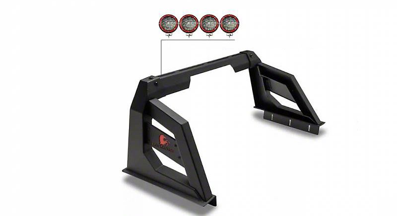 Black Horse Off Road Armour Roll Bar Kit Matte Black Steel 2 sets of 5.3" Dia. Black LED Flood Lights w/ Harness and Switch