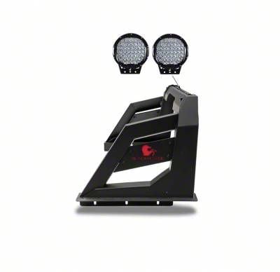 Black Horse Off Road Armour Roll Bar Kit Matte Black Steel W/ Set of 9" Black Round LED Light