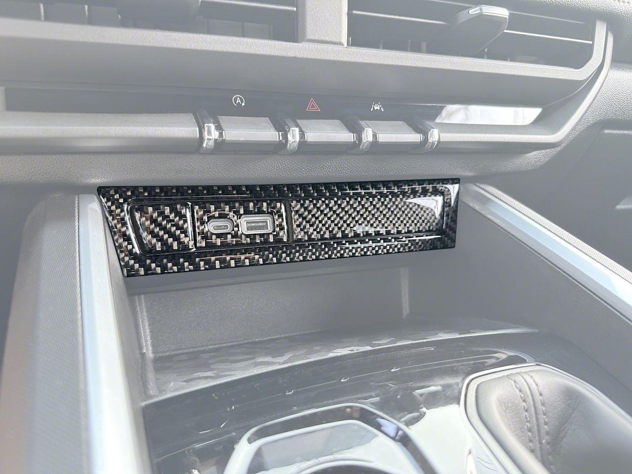 Stylish and Durable USB Port Accent Trim. The Center Dash USB Port Accent Trim enhances the style and protection of your GMC Canyon’s interior. Crafted with a raw carbon fiber design, it offers a sophisticated and rugged look while safeguarding your USB port from wear and tear.