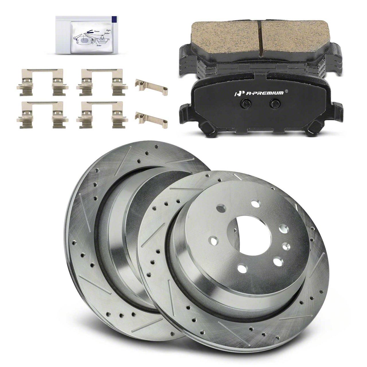 Durability and Dependability. The A-Premium Drilled Brake Rotors & Ceramic Brake Pads are renowned for their exceptional durability and dependability. Built to withstand the rigors of daily driving, these brake components are constructed with high-quality materials and engineered with precision.
