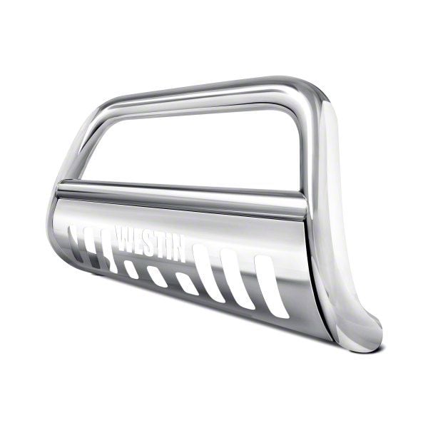Westin(TM) E-Series Bull Bars are a front-end light bar designed for trucks and larger model SUVs. It is made of 3 diameter polished stainless steel tube. It mounts utilizing existing vehicle mounting points and installation does not require any drilling to the vehicle frame. Comes complete with mounting kit the Westin(TM) E-Series Bull Bar provides a mounting point for 2 auxiliary lights up to 6 in diameter. It features a die-cut Westin(TM) block logo design on the stainless steel skid plate unique to the Westin(TM) E-Series Bull Bar.
