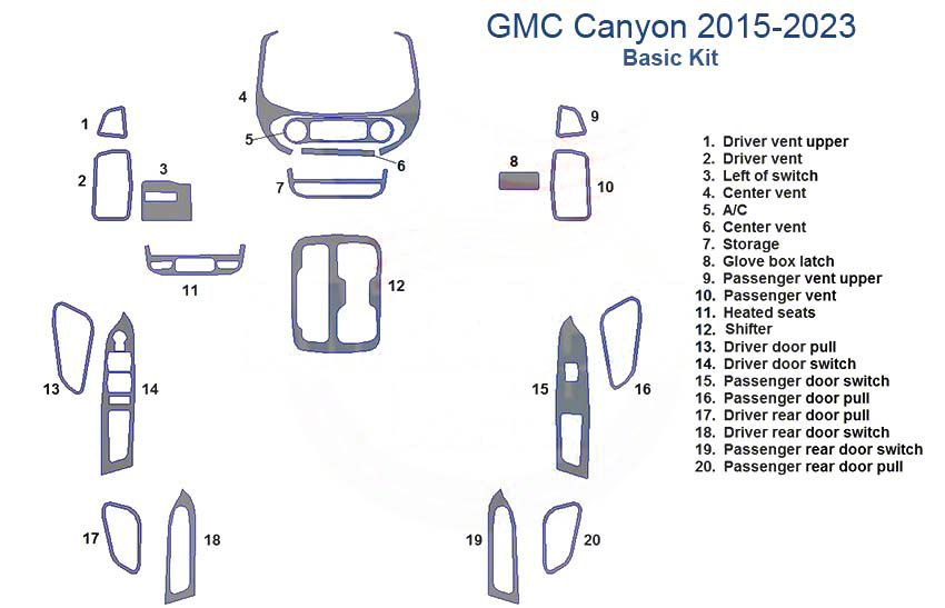 Application. This Full Dash Trim Kit (Real Carbon Fiber Finish) fits all 2015-2022 GMC Canyon Models.