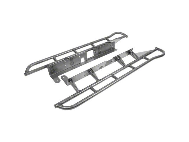 All-Pro Rock Sliders are made from heavy duty 1.75" x .120" Steel Tube. Our sliders feature an innovative, one piece mounting plate that runs down the frame allowing for an easier bolt-on installation. Rock Sliders mount with the included grade 8 hardware including countersunk bolts that are flush with the bottom surface, since exposed bolt heads can be easily mangled by rocks. Pinch flange notching may be required due to slight variations between vehicles, and minimal drilling is needed for proper installation.