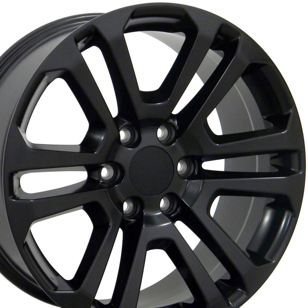 Sierra Style Satin Black 6-Lug Wheel; 22x9; 31mm Offset. The Sierra Style Satin Black 6-Lug Wheel offers a striking balance of style and refinement. Its unique design accentuates the vehicle's aesthetic, while the premium construction underscores its robust nature. This wheel is a perfect choice for those seeking both elegance and a strong visual statement.