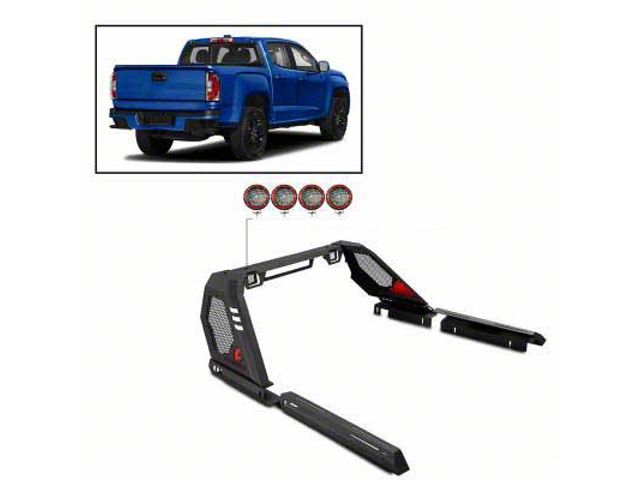 Better Trail Utility. Elevate your Colorado's off-road adventures with the Vigor Roll Bar with 5.30-Inch Red Round Flood LED Lights; Black. The roll bar is constructed from high-strength materials, ensuring superior durability and longevity. Equipped with vibrant, red flood LED lights, it ensures improved visibility during nighttime adventures. These 5.30-inch round lights deliver a wide beam pattern, illuminating the surroundings for safer off-road experiences.