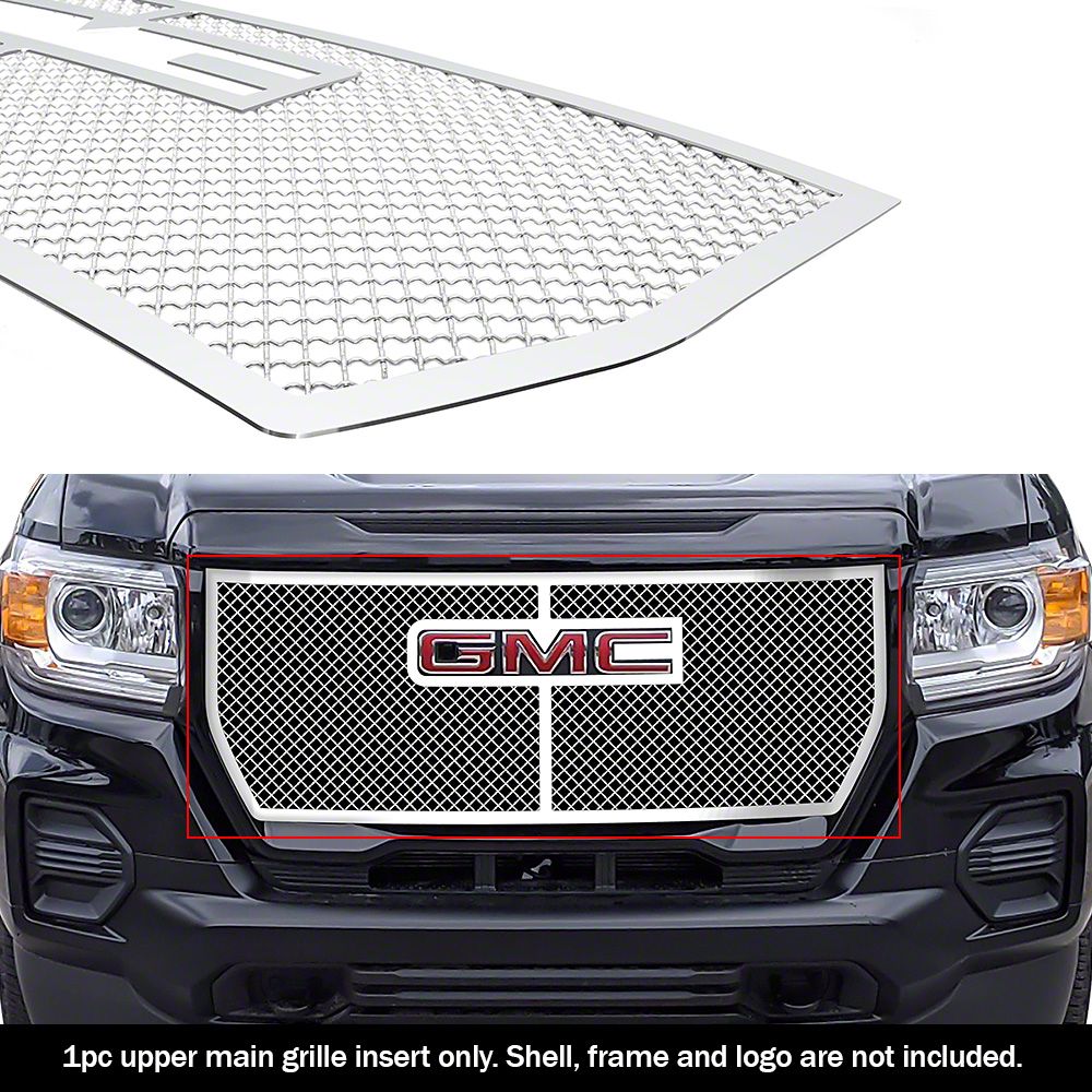 Rugged Mesh Grille Upgrade. The Wire Mesh Upper Overlay Grille delivers a bold, aggressive style to the front end of your GMC Canyon. Engineered to enhance both appearance and functionality, this grille overlay features a unique mesh design that not only elevates your truck's look but also helps boost engine airflow. It's a perfect choice for those seeking a tough, off-road-ready aesthetic with real performance benefits.