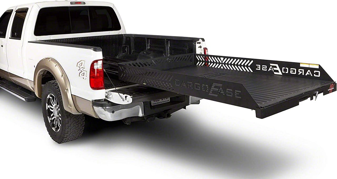 Heavy-Duty Slide. The CargoEase Full Extension 1000 Slide is a robust F-250 accessory designed to handle up to 1000 pounds with a 100% extension capability. It includes an easy pull handle and a noise reduction system, making it both practical and comfortable for use in demanding environments.