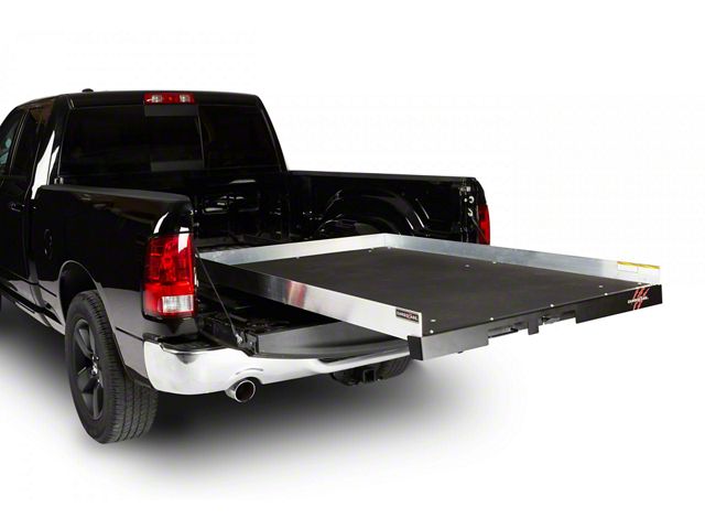 Description. Weight Capacity: 1,000lbs. Extension: 100%. Deck Material: Skid Resistant PE coated Deck / w 1/4” rubber mat on 2000lb slide. Side Rails: 4” Aluminum / Full 8”. Aluminum Tie Downs: 4 Sliding tie downs. Height from truck bed: under 6”. Number of Bearings: 16. Combined bearing ratings: 76,800N /148,000 N. Bearing Warranty: 5 years. Noise reduction system: Rubber bumpers. Handle: Easy Pull handle. Frames: Powder coated Steel. Locking positions: 4 locking positions. Lock: Solid lock linkage. Install: Patented “L” Hook kit for both Steel and aluminum bodies. Install Time: 30-60 minutes. Warranty: 5 years. Assembly: Fully assembled.