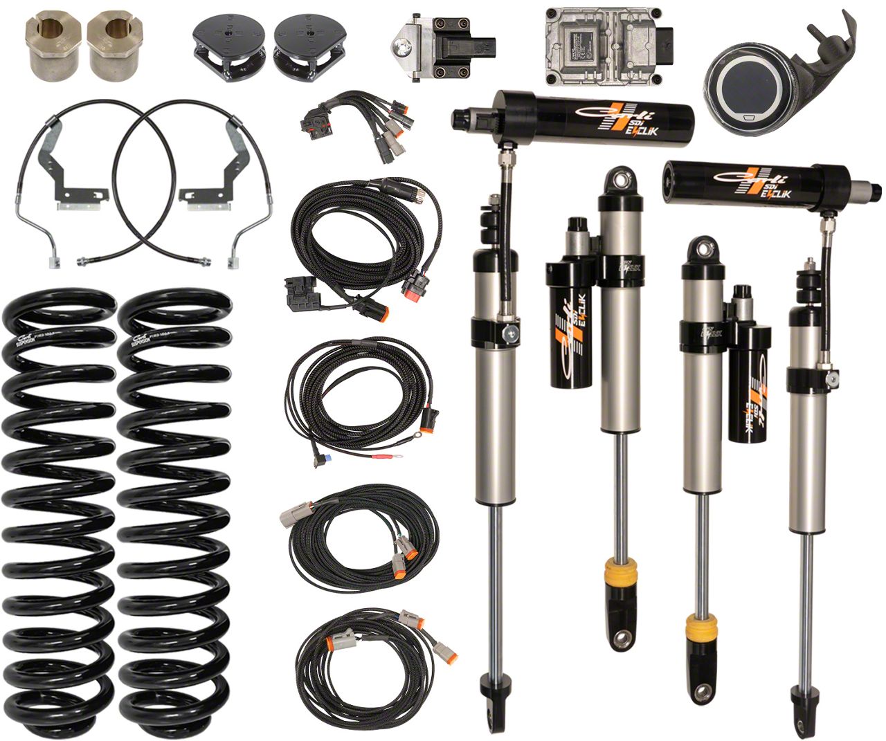 Application. This Carli Suspension E-Venture Leveling System fits 2020-2022 Four-Wheel Drive 7.3L F-350 Super Duty models.