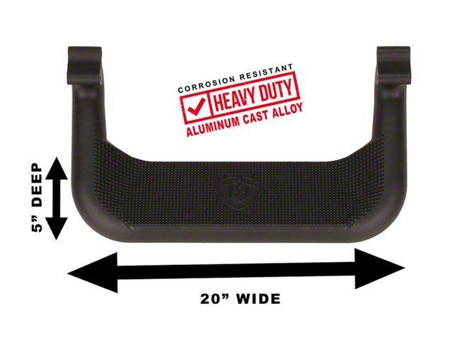 Premium Quality Construction. Manufactured from premium quality cast aluminum alloy, these black Carr Super Hoop Steps are made to last. The adjustable mounting brackets are constructed using durable stainless steel material. What's more? The black powder coat finish is durable to withstand the elements and will not scratch or peel.