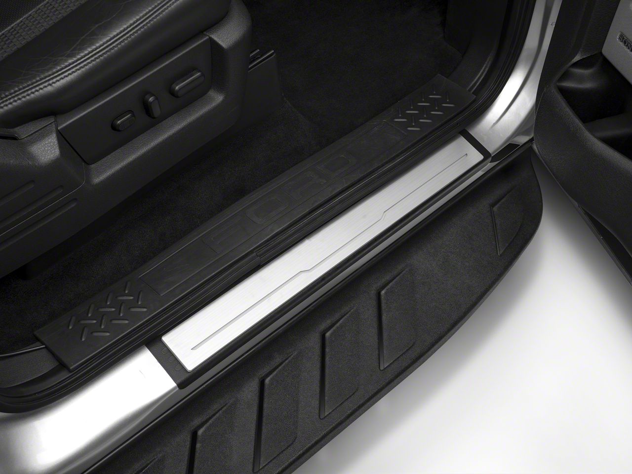 Unique Door Sill Protection. Aniglo Animated Lighted Sill Plates prove that guarding your F-150's sills from scrapes or dings can combine practicality with a fun, stylish touch. Opening the door triggers an animated illumination display provided by 40 micro-LEDs built into grooves in the plates, creating thin ribbons of light that slide along its length. On a practical level, the lights also provide a subtle glow that lets you see where you're putting your feet at night without dazzling you, while the 304 stainless steel surface plate shields the sill from wear and tear.