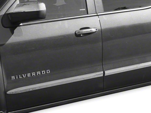 A Little Extra Flash. Upgrade your Crew Cab's appearance with a set of stylish Chrome Bodyside Moldings. Made from automotive-grade, durable ABS plastic, Chrome Bodyside Moldings are chip and crack resistant and will be able to handle the harshest elements on the road with ease. The triple-chrome-plated finish ensures that these bodyside moldings will keep their shine for the long-haul.