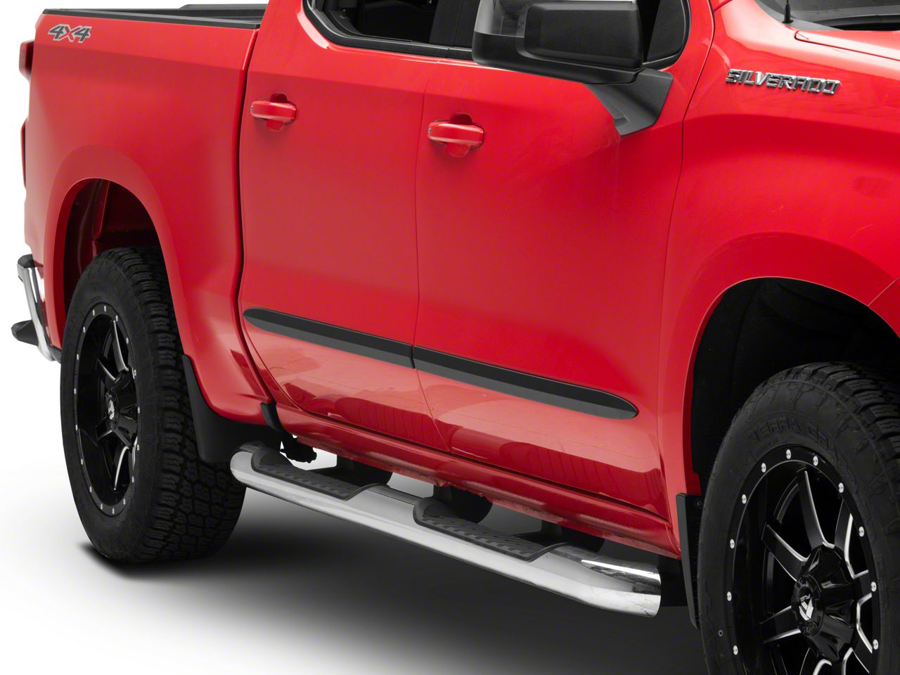 Application. These Bodyside Moldings in Black are specifically designed to be used on all 2019 to 2025 Chevrolet Silverado 1500 Crew Cab models.